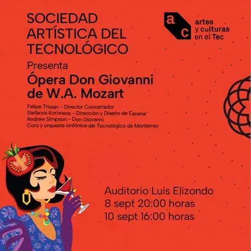 Llega al Auditorio Luis Elizondo, como parte de la nueva temporada de la Sociedad Artística Tecnológico, la ópera Don Giovanni, con la dirección general de Stefanos Koroneos, director artístico del Teatro Grattacielo y dirección musical de Felipe Tristán, director asociado de la Orquesta Sinfónica de Brooklyn.