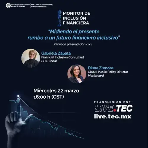 El panel de lanzamiento del Monitor de Inclusión Financiera lleva por título "Midiendo el presente hacia un futuro financiero inclusivo".