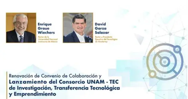 El Tec de Monterrey y la UNAM anunciarán la creación del Consorcio de Investigación, Transferencia Tecnológica y Emprendimiento UNAM-TEC.