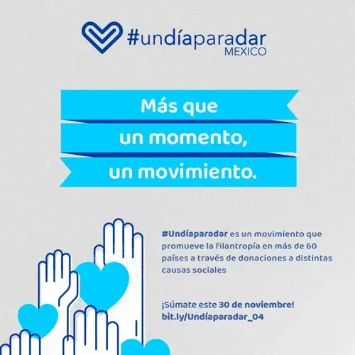 El próximo 30 de noviembre, nos sumamos al movimiento internacional de #UnDíaParaDar y ¡queremos que tú seas parte! Ayúdanos a inspirar a más personas a unirse y vivir con nosotros la filantropía.