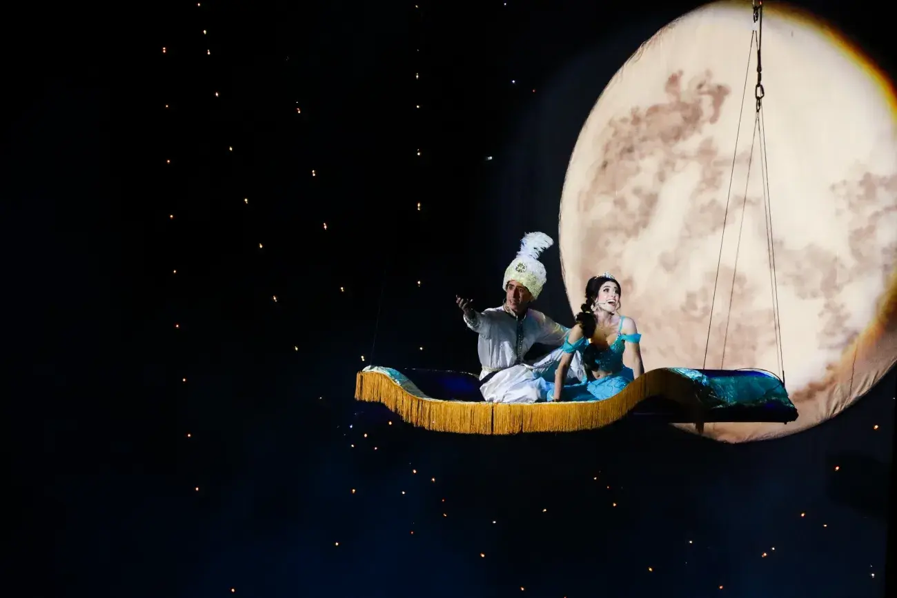 A nivel de producción, uno de los principales retos de la obra fue la construcción de la alfombra mágica. El equipo técnico superó el desafío al diseñar y construir una estructura escénica capaz de alcanzar los 3 metros de altura. Su realización requirió un sistema de poleas y una inversión de 6 horas de trabajo.